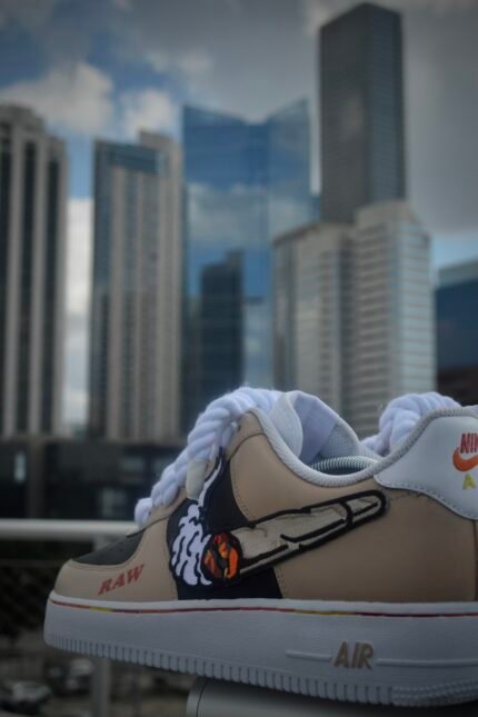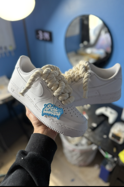 The Burberry AF1 blends timeless streetwear with iconic heritage-inspired pattern work. Built on the classic Force 1 silhouette, this pair features custom plaid paneling layered into the upper for a sharp contrast against the clean leather base. Thick rope laces elevate the look, adding texture and presence while keeping the foundation rooted in everyday comfort and durability.