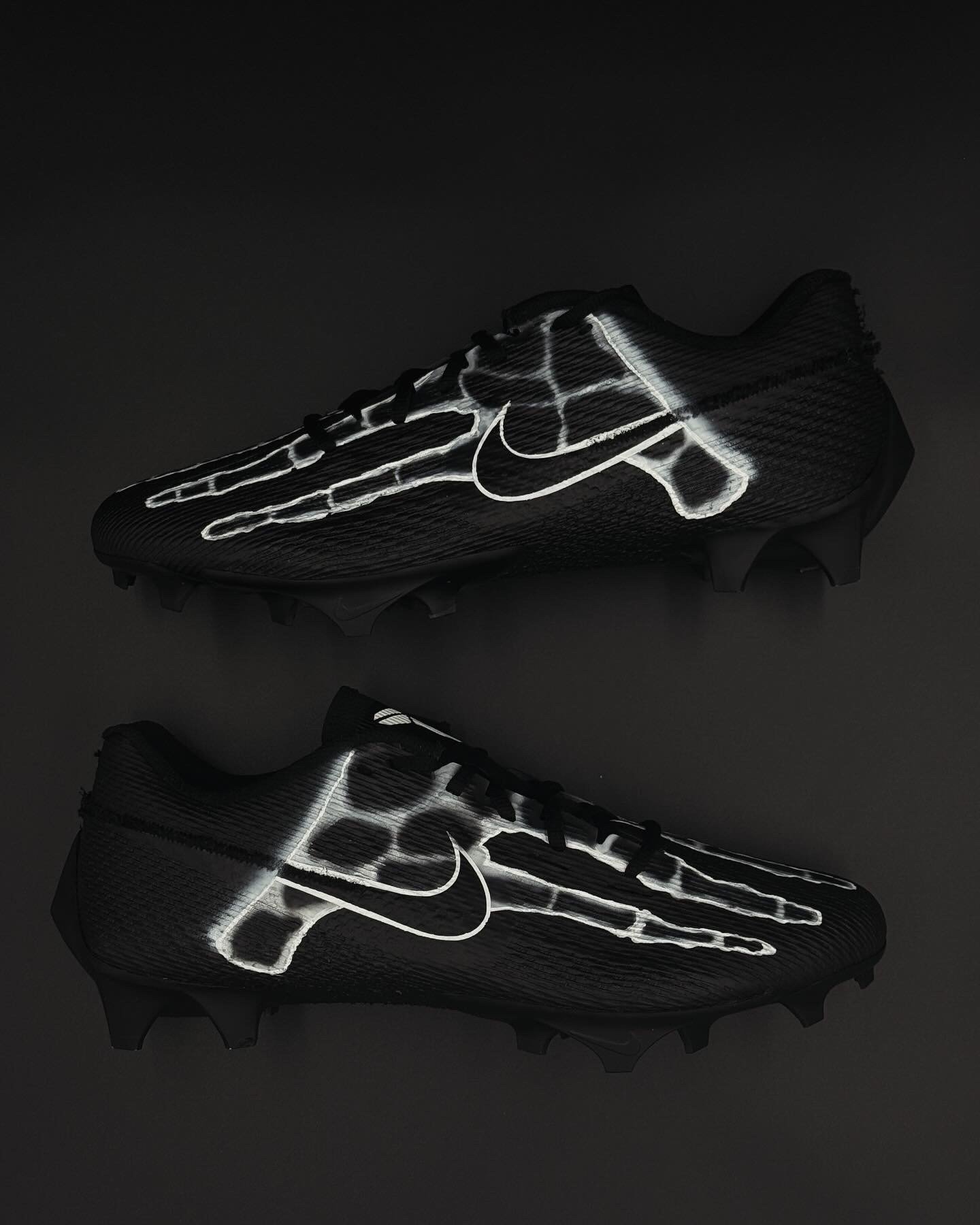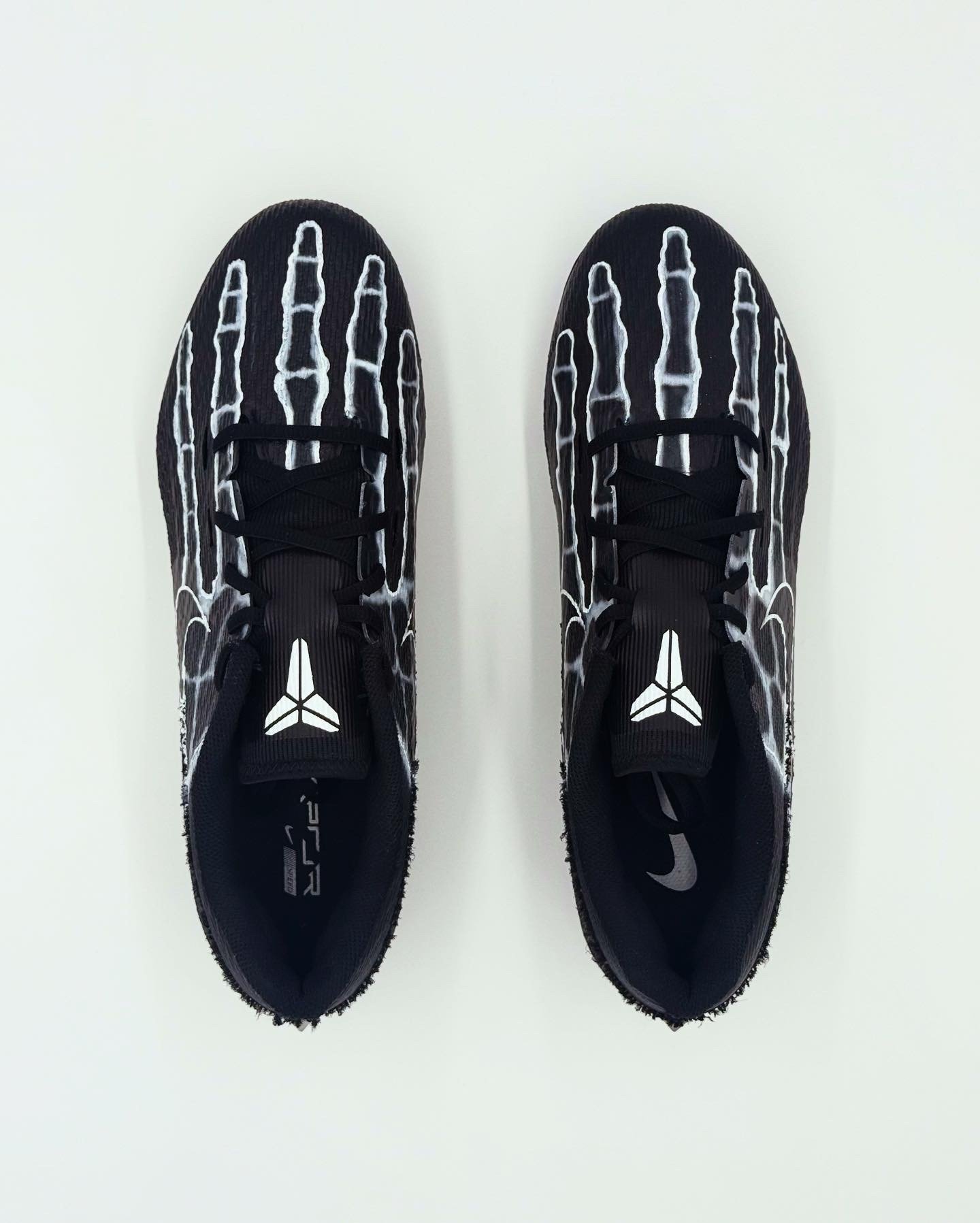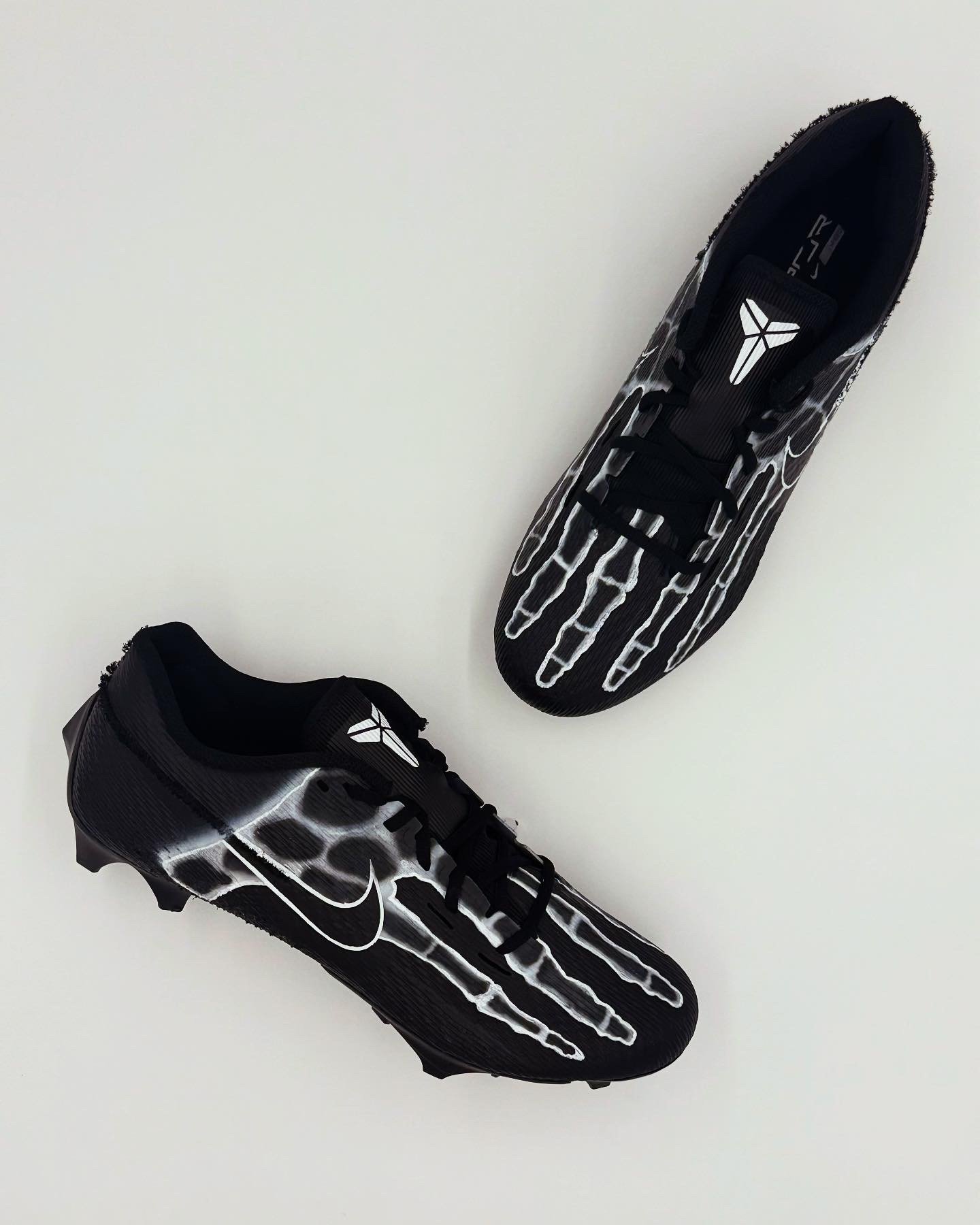 The Skelly custom cleats feature a bold skeletal graphic over a dark performance base, built for players who embrace the relentless edge of Kobe Bryant’s Mamba Mentality. Hand-painted and performance sealed, they’re made for athletes who compete with intensity, discipline, and zero fear.